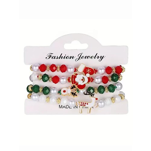 Set di braccialetti natalizi da donna con perline e ciondoli a forma di Babbo Natale, renna e pupazzo di neve, braccialetti elastici con perle rosse e verdi, regalo di gioielli per le feste per lei