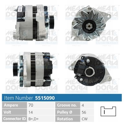 Laturi 14V 70A Meat & doria 5515090 - citroën, peugeot, talbot - OE 5557 24, 5705 25, 5705 80