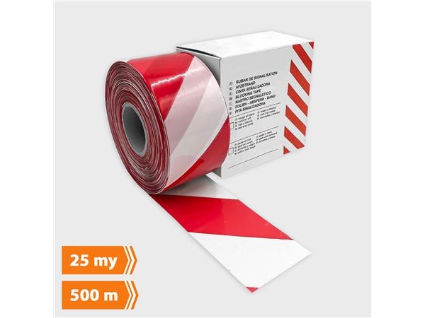 HDPE-sulkuteippi punainen/valkoinen - 500 metrin rulla