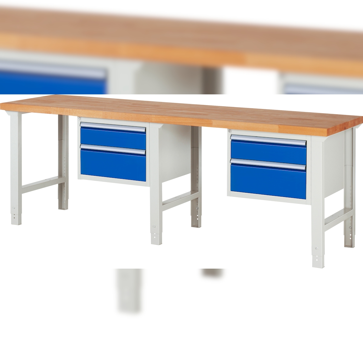 PROREGAL Werkbank Serie 7000 - Modell 7123 | HxBxT 79-114x250x70cm | 4x Schublade | Schubladenmaße 2x150 + 2x210mm