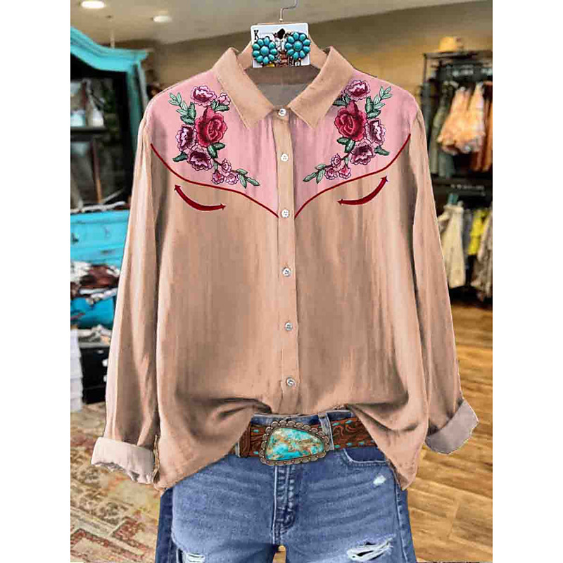 Women's Shirt Button Down Tunic Shirt Collar Long Sleeve Floral Graphic Western Casual Regular Tops Work Daily s Print Blush Pink Yellow Red Spring Fall Winter