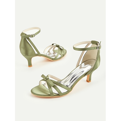 sandali da sposa con tacco a gattino in raso argentato e fiocco di strass – eleganti scarpe da sposa con cinturino alla caviglia e punta aperta per la sposa e il ricevimento