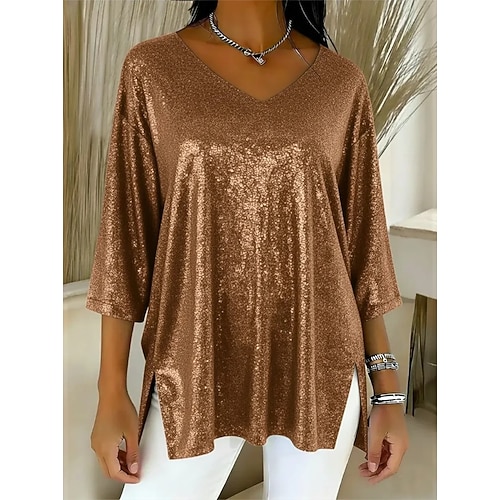 Capodanno Per donna Camicia Elegante Abbigliamento da sera Blu Vino Marrone chiaro Viola Marrone Autunno Inverno