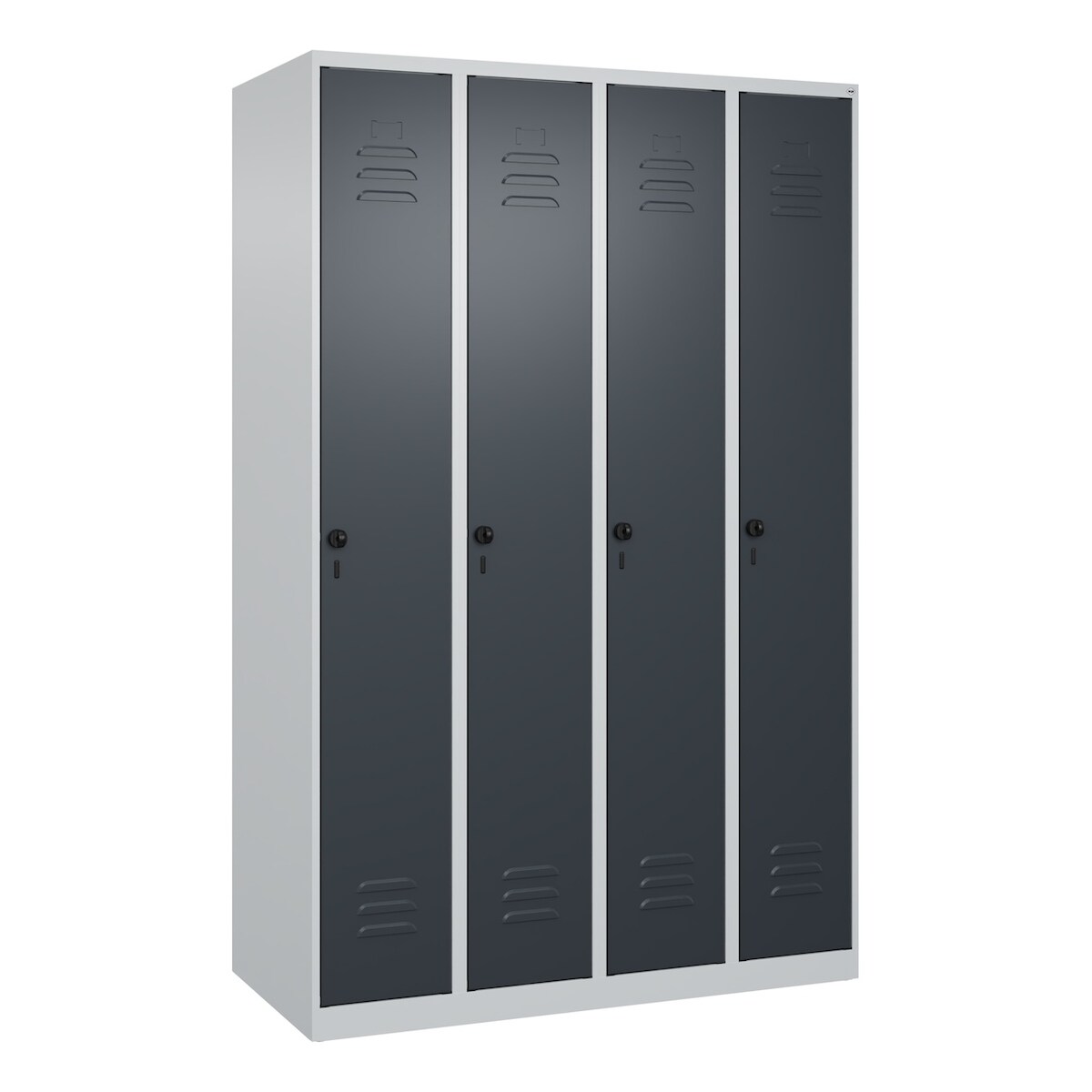 C+P Spind Classic PLUS, 4 Abteile, HxBxT 185x120x50cm, Sicherheitsdrehriegel, Hellgrau/Anthrazit von PROREGAL