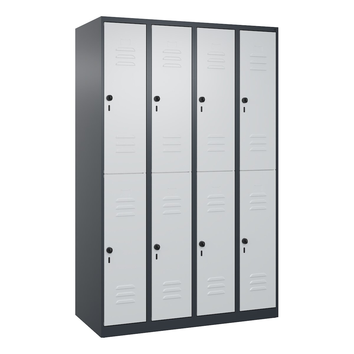 C+P Spind Classic PLUS, 8 Abteile, HxBxT 185x120x50cm, Sicherheitsdrehriegel, Anthrazit/Hellgrau von PROREGAL