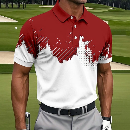 Per uomo Geometrico Golf Polo Sportivi Manica Corta Magliette polo Camicie con Colletto Casual Athleisure Bottoni Estate Blu Rosso Azzurro cielo