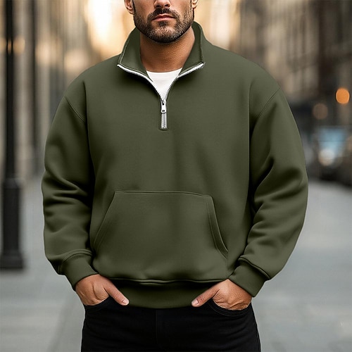 Per uomo Maglia Felpa con zip corta Nero Bianco Verde militare Blu marino Cammello Mezza zip Semplice Quotidiano Sport Outdoor Ferie Cotone Streetwear Essenziale Casual Primavera Autunno