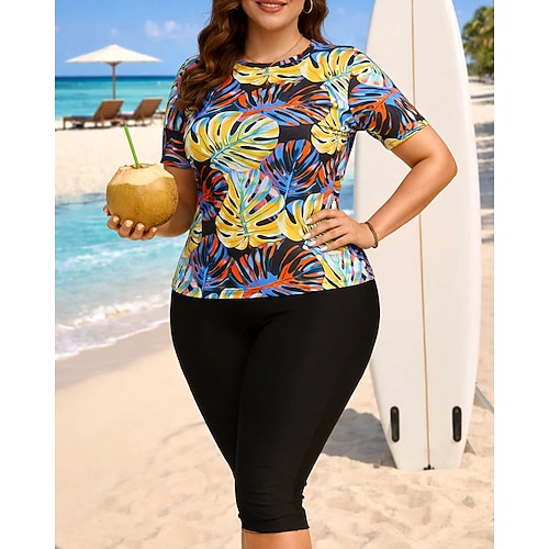 Per donna Costume da bagno Tankini 2 pezzi Stampato Gamba lunga fino al ginocchio Protezione UV Asciugatura Rapida Elastico Manica Corta Costume da Bagno Costume da bagno Surf Spiaggia Nuoto Estate
