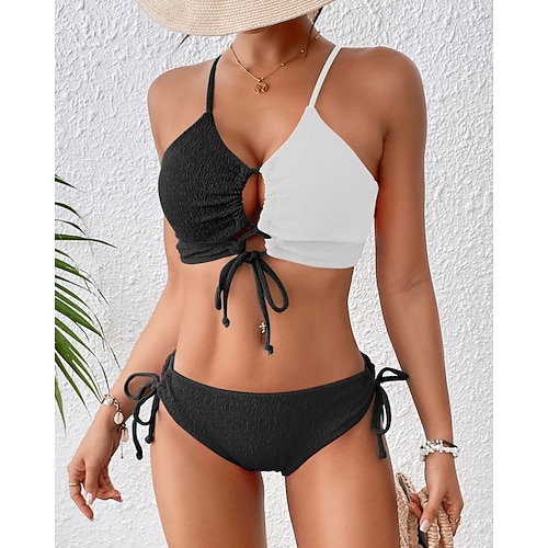 Per donna Tankini Costume da bagno a due pezzi Schiena scoperta Costumi da bagno Collage Costumi da bagno Nero Giallo Traspirante Asciugatura rapida Leggero Senza maniche - Nuoto Surf Spiaggia Estate