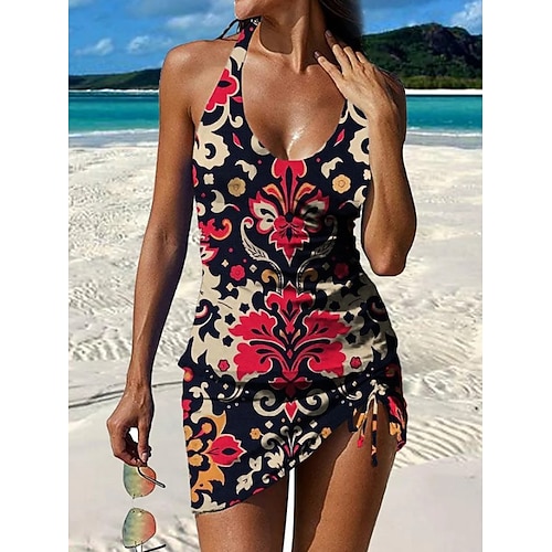 Per donna Costumi da bagno Tankini Gonna Costume da bagno Elegante Vacanza Floreale Grafico Scollo a V Senza Maniche Costumi da bagno