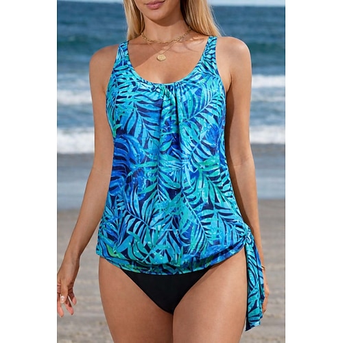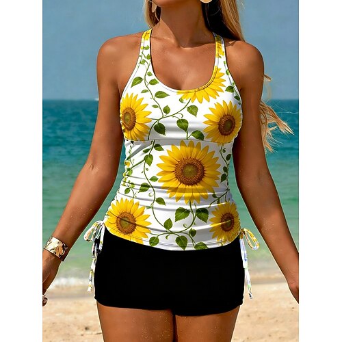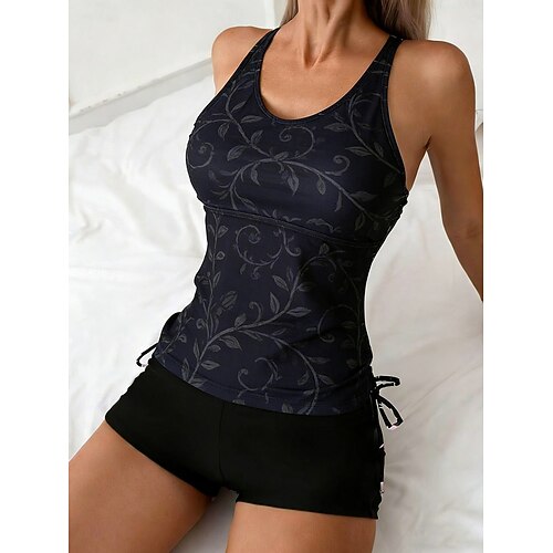 Per donna Costume da bagno con stampa floreale Tankini 2 pezzi Stampato Elastico Senza Maniche Costume da Bagno Surf Snorkeling Nuoto Estate