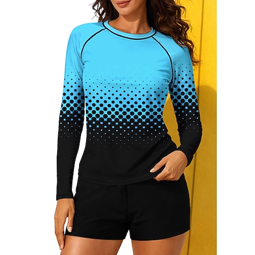 Per donna Costume da Bagno Rash Guard Top sottomuta Costumi da bagno tankini Geometrico 2 Pezzi Imbottitura rimovibile Boyleg Protezione Solare UV UPF50 Elastico Manica Lunga Costume da Bagno Top