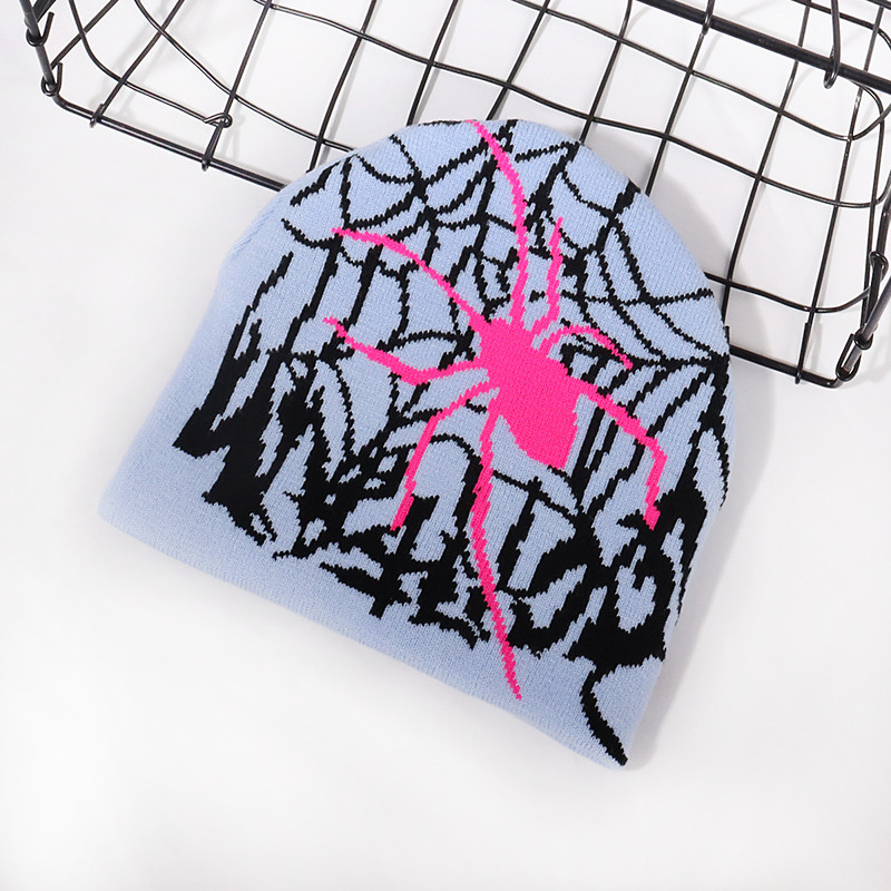 Men's Unisex Beanie Hat Winter Hats Beanies Skull Cap Knit Hat Light Blue Black Acrylic Fibers Jacquard Knitted Cozy Halloween Daily Wear Festival Spider Spider web Warm
