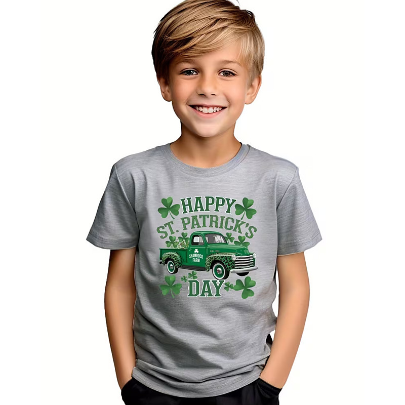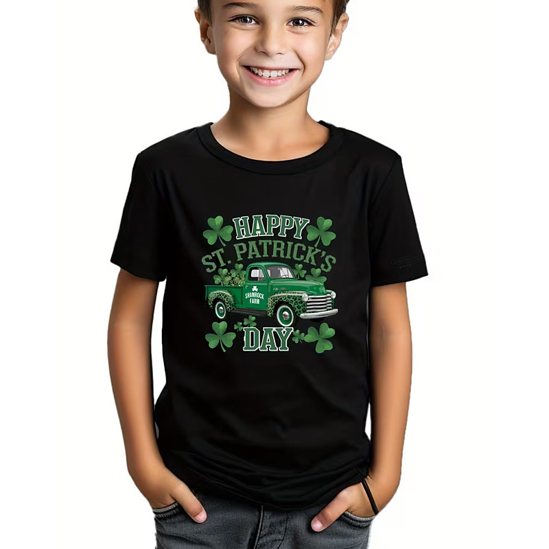 St. Patrick Unisex Boys' 3D Graphic Car Four Leaf Clover T shirt Tee Short Sleeve 3D Print Summer Spring Sports Fashion Streetwear Kids 4-12 Years Crew Neck Casual Daily Outdoor Regular Fit