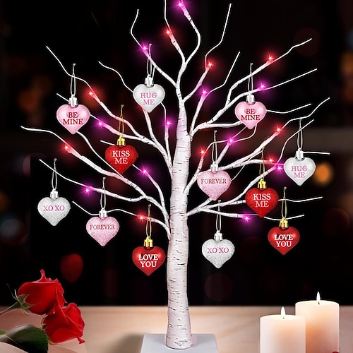 Decorazione per albero di betulla per San Valentino, festa della mamma, luci da 60 cm/24 pollici, batteria AAA, alimentazione USB, doppio scopo, regalo per fidanzata, amante, moglie, madre, camera da
