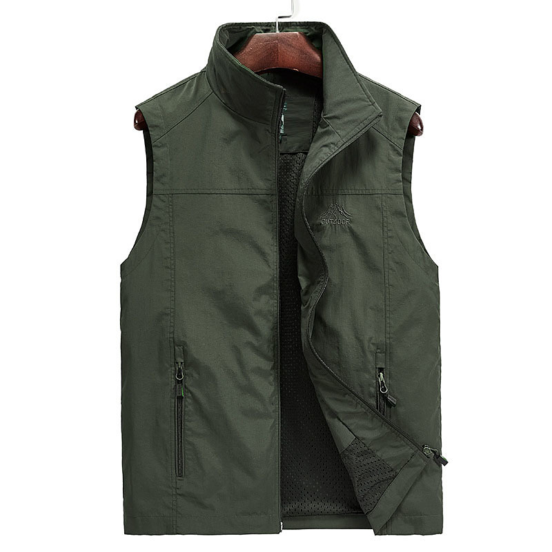 Men's Fishing Vest Sleeveless Vest Outdoor Casual Spring Fall Zipper Pocket Nylon Quick Dry Plain Zipper Army Green khaki Dark Blue Vest