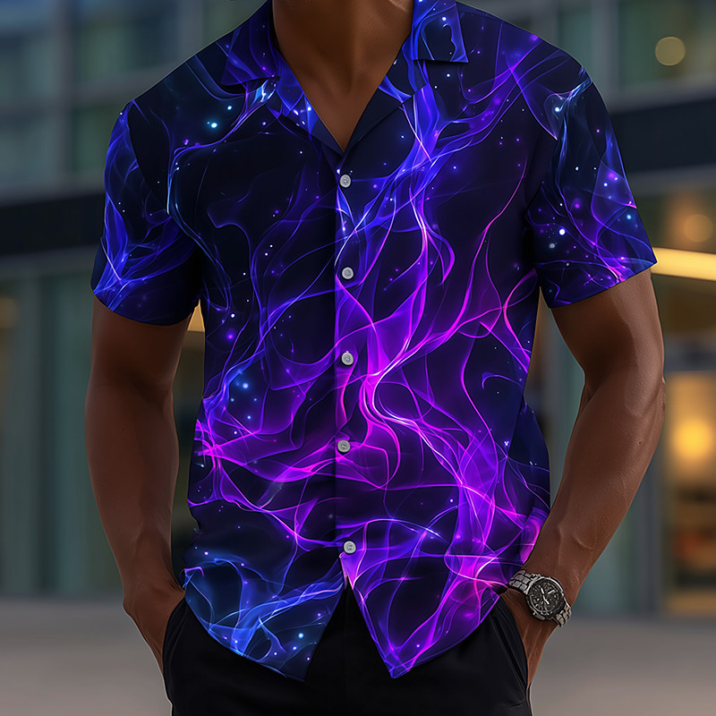 Men's Flame Neon Glow Shirt Button Up Shirt Short Sleeve Fashion Casual Streetwear Vacation Summer Spring Turndown 3D Print Collared Shirts Purple Orange Green