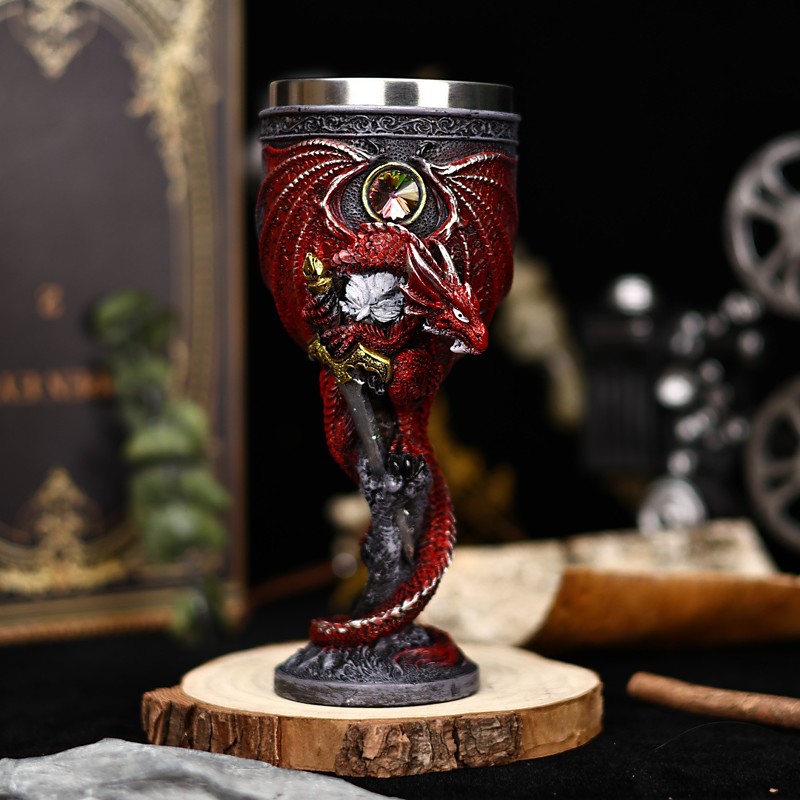 Medieval Mythology Wine Glass,Dragon Warrior Creative 3D Monster Dragon Stainless Steel Red Wine Goblet