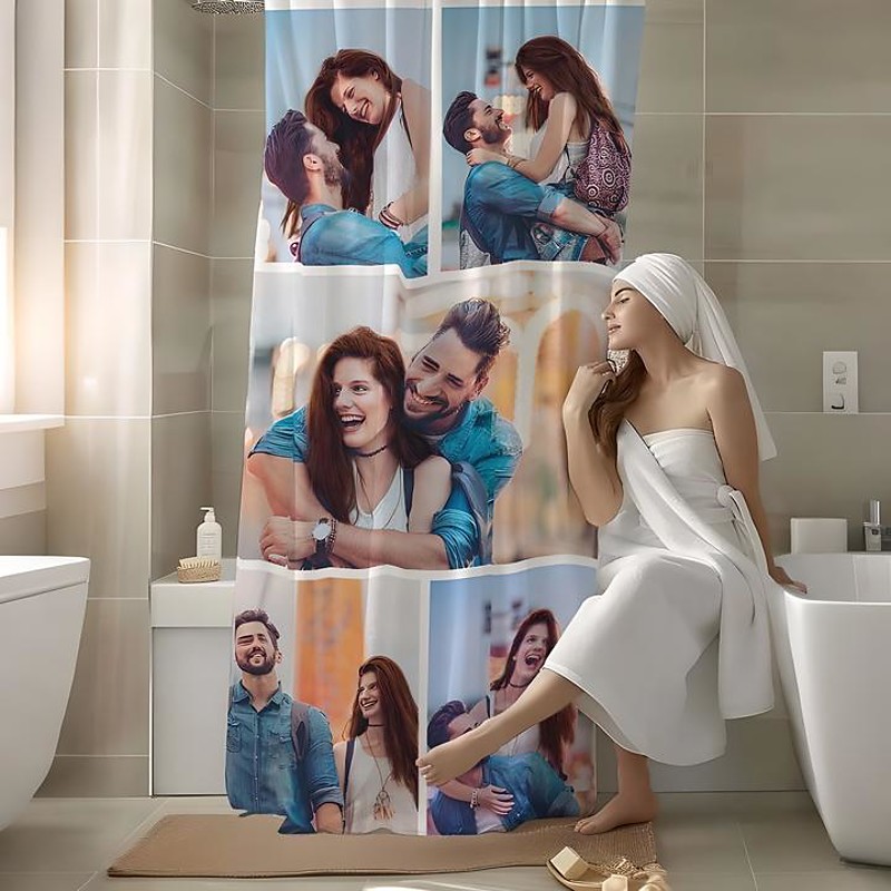 Personalized Photo Shower Curtain with 12 Hooks- Custom Wedding Gift for Couple Wedding Gift Bathroom Decor Fabric Waterproof Washable Upload Your Image Photo Picture for Bathroom Hotel