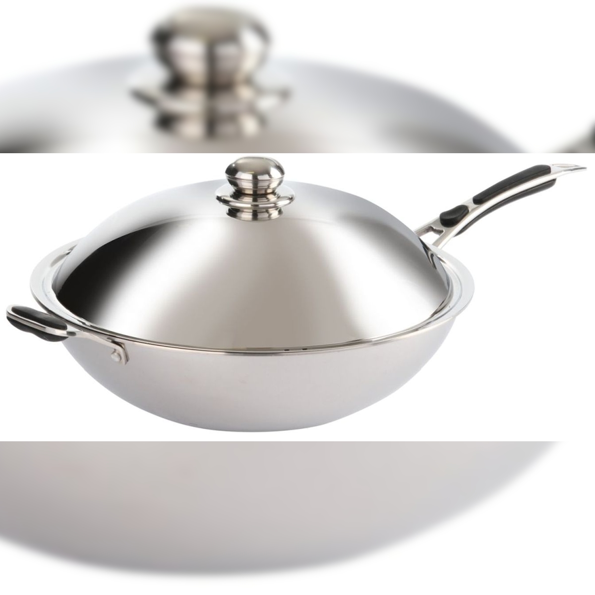 Wok Edelstahl mehrschichtig, runder Boden, Antihaft