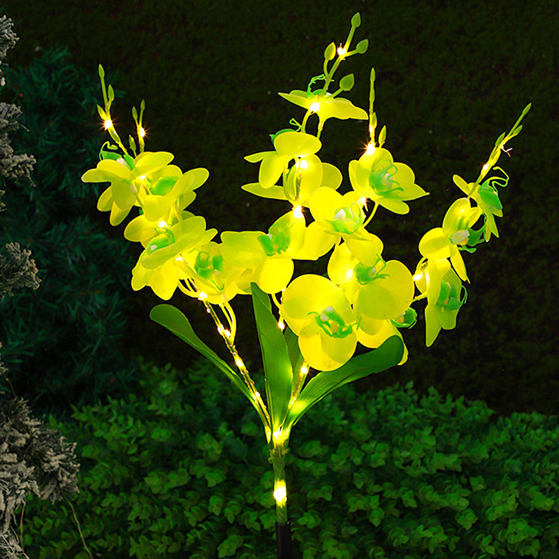 2PCS Solar Outdoor Waterproof Flower Lights Patio Lights Phalaenopsis Orchid Flower Lawn Light for Garden Terrace Yard Pathway Holiday Atmosphere Landscape Decoration