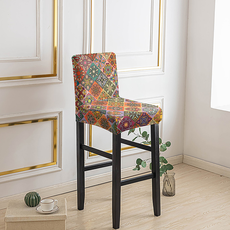 1/2/4/6/pcs Stretch Printed Bar Stool Chair Covers Low Back Chair Slipcovers for Home Hotel Dining Room