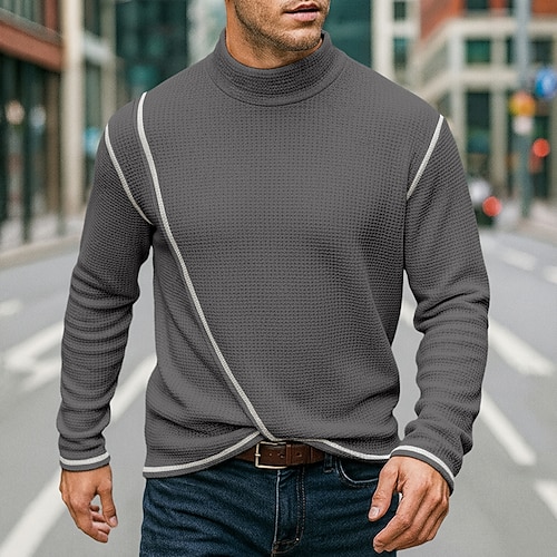 Per uomo Pullover Maglione Maglione lavorato a maglia Maglione a collo alto da uomo A coste Maglia Standard Lavorato a maglia Liscio A collo alto Di tendenza Informale Da tutti i giorni Appuntamento