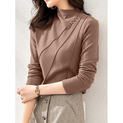 Per donna Blusa Tinta unica Elegante Essenziale Casual Manica Lunga Collo Alto Top Regolari Quotidiano Nero Bianco Marrone Verde Primavera Autunno Inverno