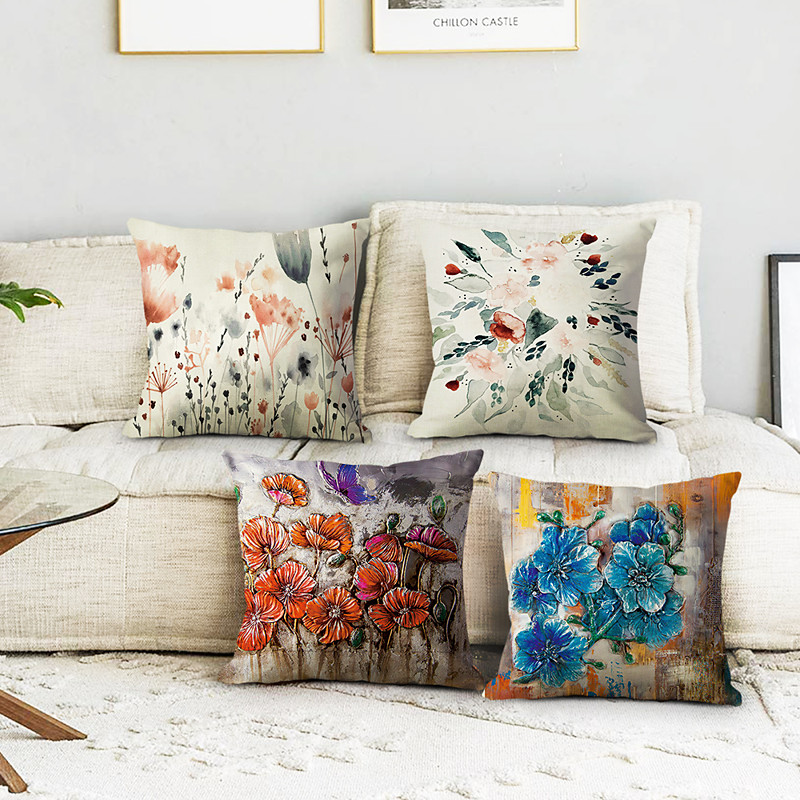 Vintage Floral Double Side Cushion Cover 4PC Soft Decorative Square Throw Pillow Cover Cushion Case Pillowcase for Bedroom Livingroom Superior Quality Machine Washable Indoor Cushion for Sofa Couch Bed Chair