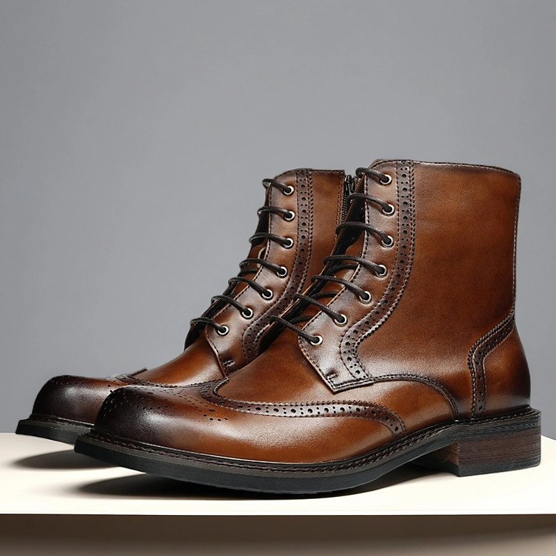 Men's Brown Brogue Lace-Up Ankle Boots Classic Wingtip Design Rugged Outdoor Work Boots for Business Casual, Travel and Daily Wear
