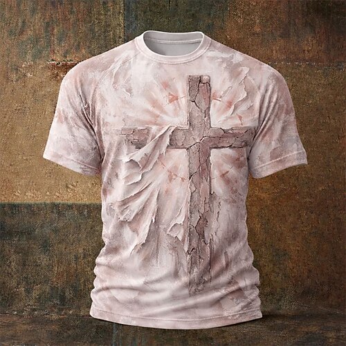 T-shirt cristiana 3D croce della Bibbia da uomo maglietta a maniche corte stampa 3D collo giro shirt religioso patriottico casual quotidiano party azzurro chiaro rosa kaki estate primavera