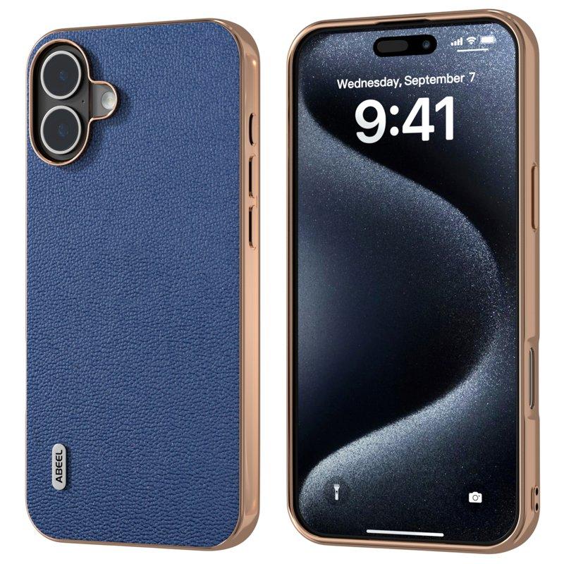ABEEL Mobilskal till iPhone 16 Electroplating Edge Äkta Läder Blå