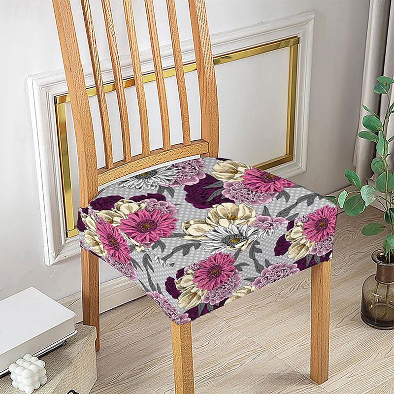 Stretch Seat Covers for Dining Room High Back Dining Chair Cover Floral Printed Soft Removable Washable Seat Covers for Dining Chairs, Dining Room Seat Cover Protector