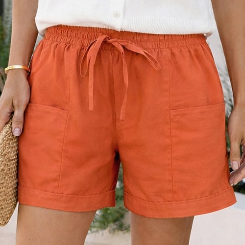 Damen Kunstbaumwollleinen Shorts Sommershorts Strandshorts Urlaub Mode Alltagstauglich Kurz Hohe Taille Einfarbig Einfach Kordelzug Tasche Elastischer Bund Komfort Weich Atmungsaktiv Unelastisch