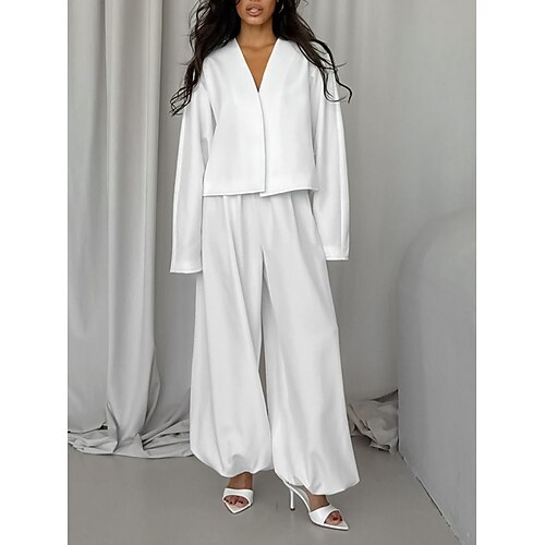 Per donna Set da due pezzi Set di Pantaloni Manica Lunga Scollo a V Semplice Moda Streetwear Casuale Quotidiano All'aperto Nero Bianco Marrone Estate Vestibilità regolare