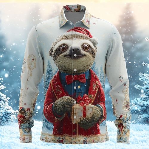 Weihnachten Herren Tiermotiv Faultier Alpaka Hemd Knopfhemd Langarm Lustig Outdoor Ferien Frühling Herbst Umlegekragen 3D-Druck Hemden mit Kragen Rot 1 Rote Khaki Hellblau