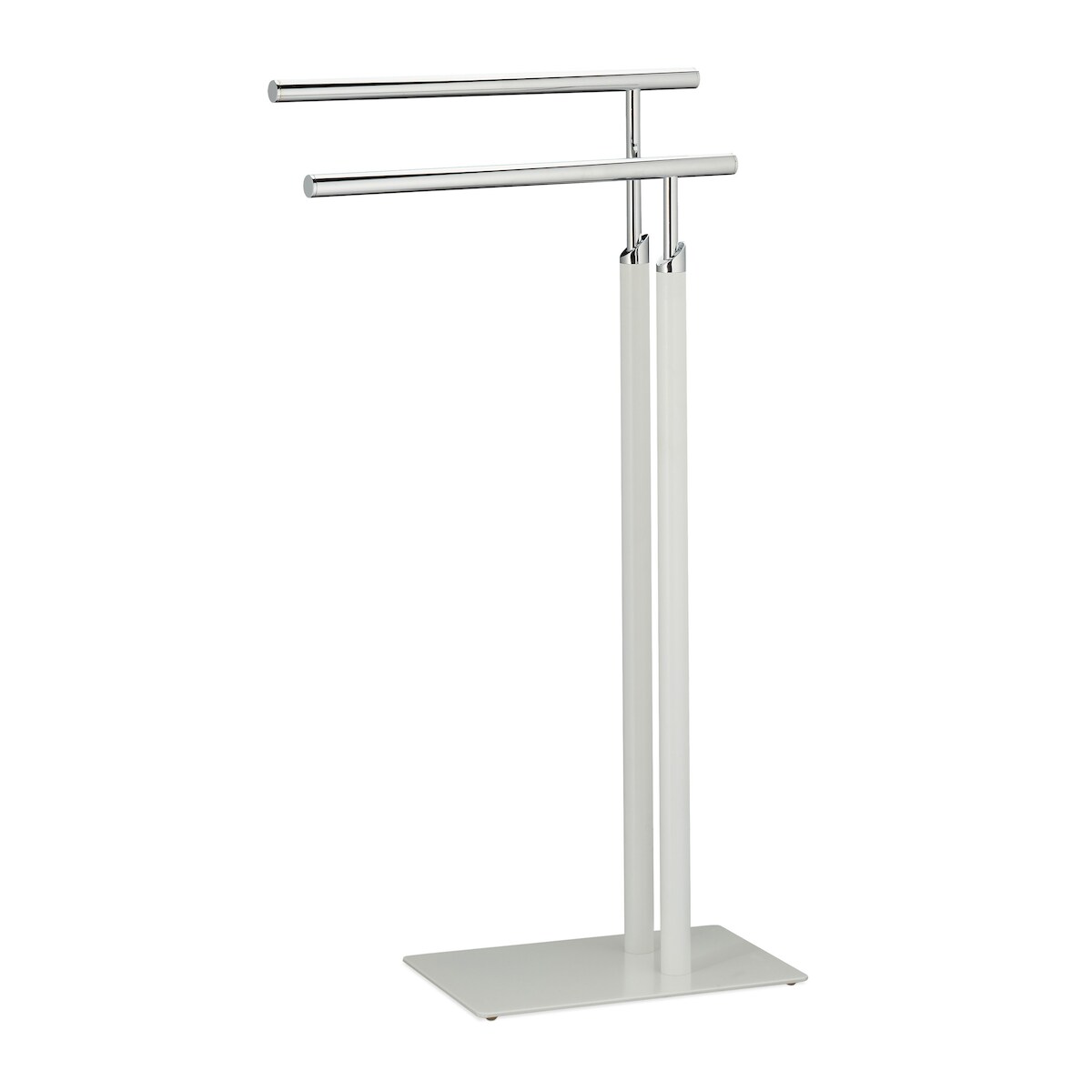 Relaxdays Handtuchhalter stehend, 2 Stangen, HxBxT: 78 x 44 x 20 cm, Standhandtuchhalter fürs Bad, Stahl, weiß/silber