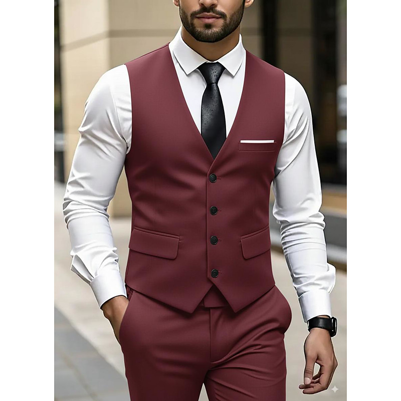 Men's Wedding Party Business Suits V Lapel Burgundy Dark Green Formal Solid Colored Slim Fit 2 Piece