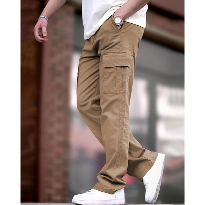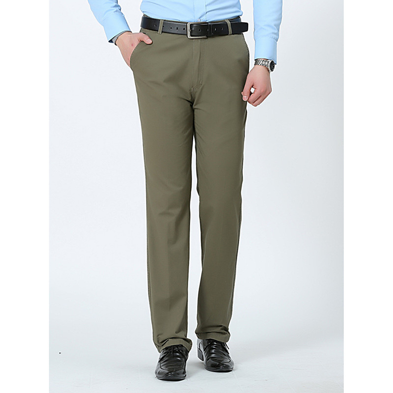 Men's Dress Pants Trousers Chinos Buttons Pocket Plain Comfort Formal Party Work Fashion Classic Style Dark Khaki Light Khaki