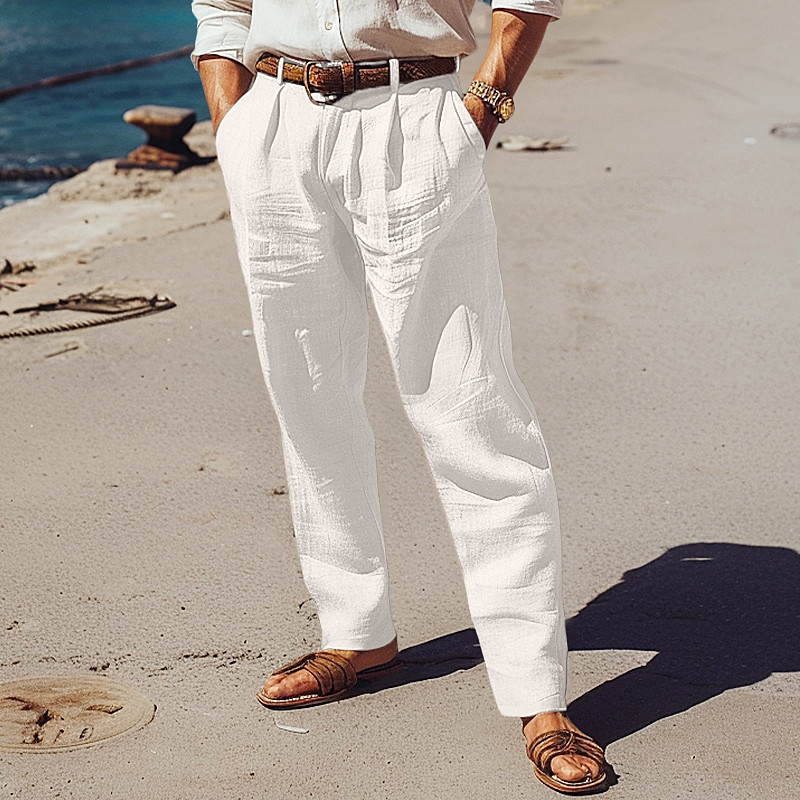 Men's Linen Pants Trousers Baggy Pants Beach Pants Drawstring Pocket Plain Comfort Breathable Full Length Daily Vacation Stylish Black White Inelastic