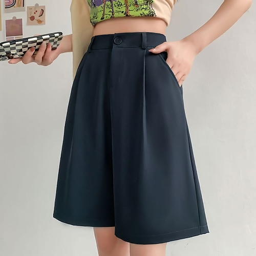 Per donna Bermuda Chinos Shorts Vacanza Streetwear Casual Lunghezza al ginocchio Vita media Semplice Tasca Fibbia Comodo Traspirante Micro-elastico Quotidiano All'aperto Streetwear Grigio scuro Nero