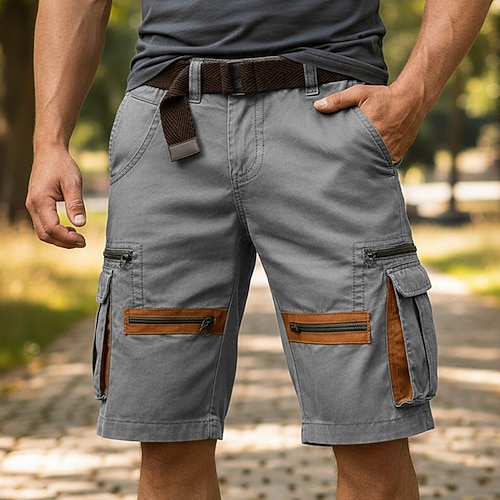 Per uomo Carico tattico Pantaloncini cargo Shorts Pantaloncini casual Tasca Elastico in vita Semplice Tinta unita Corto Casuale All'aperto Abbigliamento casual alla moda Moda Streetwear Nero Cachi