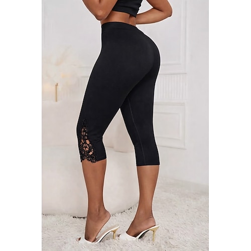 Per donna Pantaloni capri leggings casual Vacanza Moda Streetwear Lunghezza al polpaccio Vita Alta Semplice Pizzo Elastico in vita Comodità Elasticizzato Quotidiano Vacanza Streetwear Nero Bianco