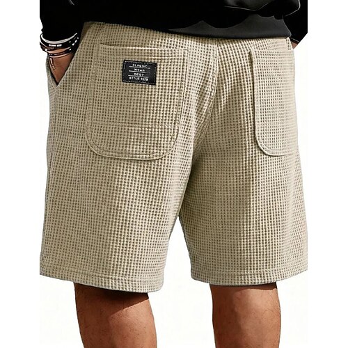 Per uomo Pantaloncini Waffle Shorts Pantaloncini casual Tasca Elastico in vita Semplice A quadri Comodità Traspirante Lunghezza al ginocchio Casuale All'aperto Vacanza Vacanza Moda Nero Bianco
