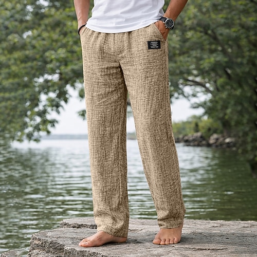 Per uomo Pantaloni di Lino Pantaloni Pantaloni da Spiaggia Coulisse Tasca Elastico in vita Semplice Comodità Traspirante Vacanza Quotidiano Ferie Hawaiano Boho Cachi chiaro Nero