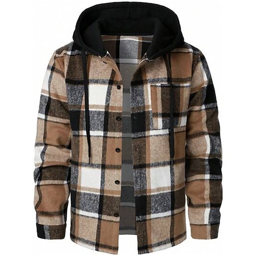 Per uomo Giacca Camicia Giacca Casual Giacca con Cappuccio All'aperto Casuale Calore Termico Tasca Autunno Inverno Plaid Streetwear Quotidiano Con Cappuccio Regolare Bianco Rosso Arancione Verde Cachi