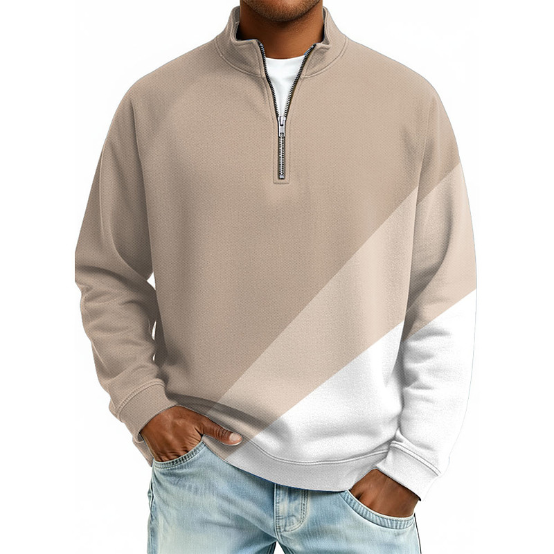 Men's Color Block Zip Polo Shirts Long Sleeve Polo Shirts Grandad Collar Casual School Athleisure Holiday Daily Wear 3D Print Quarter Zip Polo Spring Fall Winter Blue Purple Brown