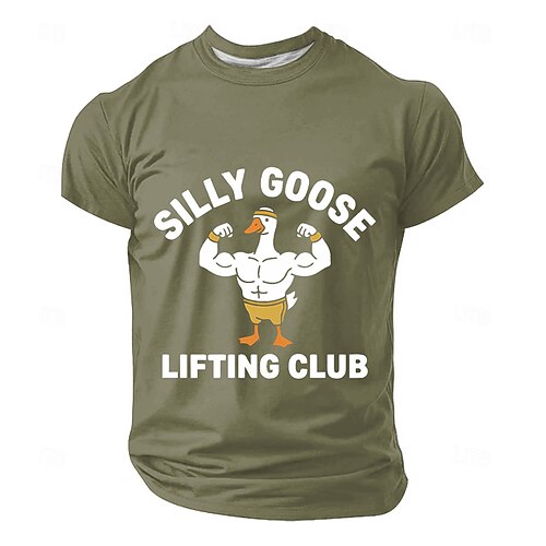 Lustiges Herren-T-Shirt mit Gans-Motiv (Muskelprotz, Bizeps anspannend) – ideal für Fitnessstudio, Bodybuilding und andere sportliche Aktivitäten. Erhältlich in den Größen S, M und L.