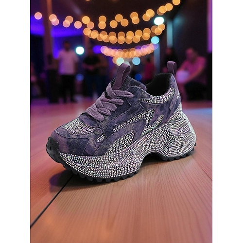 Sneakers da donna con plateau e strass viola - scarpe da ballo scintillanti e voluminose per la moda in discoteca, spettacoli teatrali e feste notturne