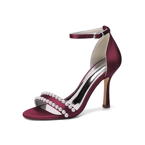 sandali da donna con tacco alto in argento - eleganti scarpe da sposa con cinturino in perle per matrimoni in giardino